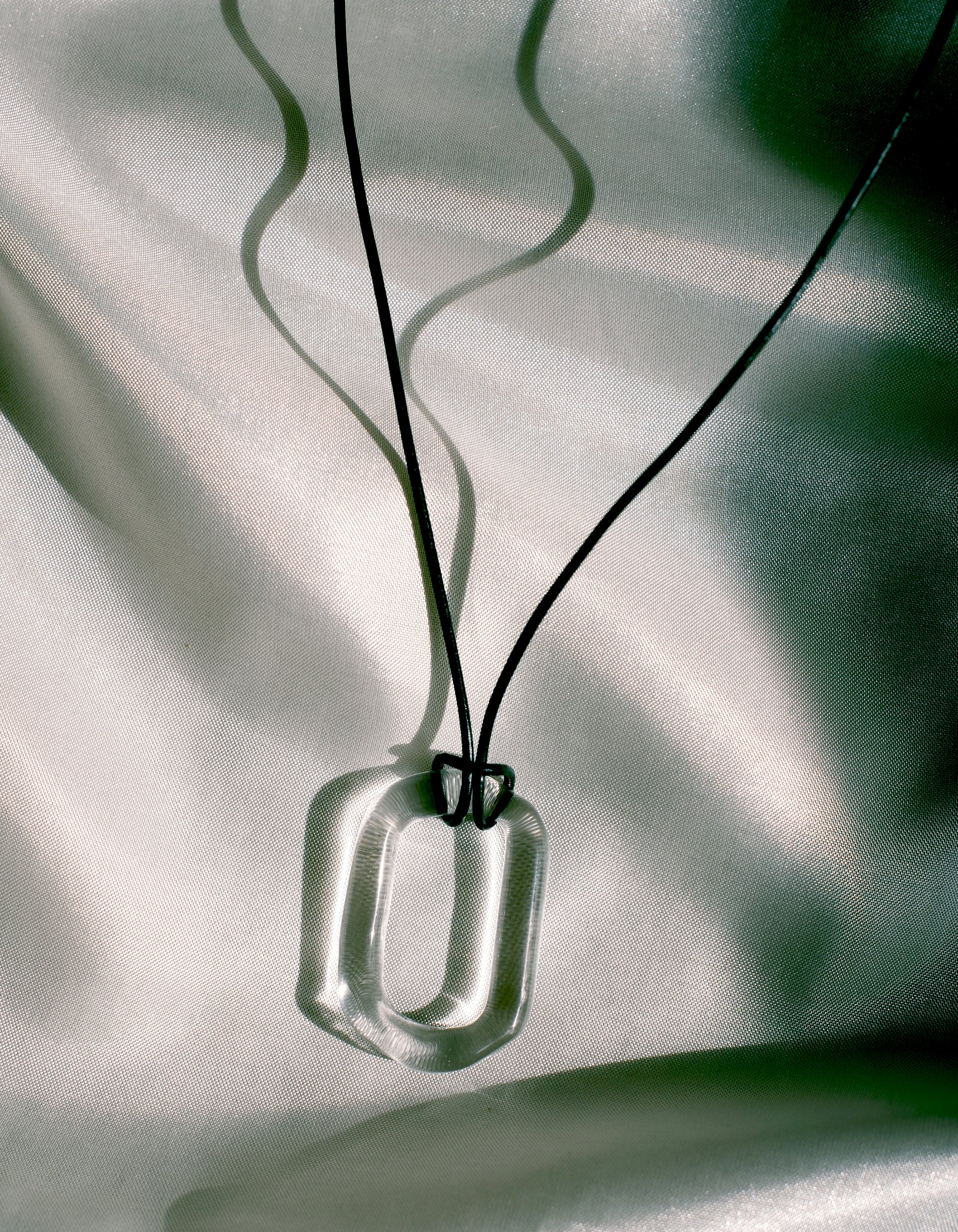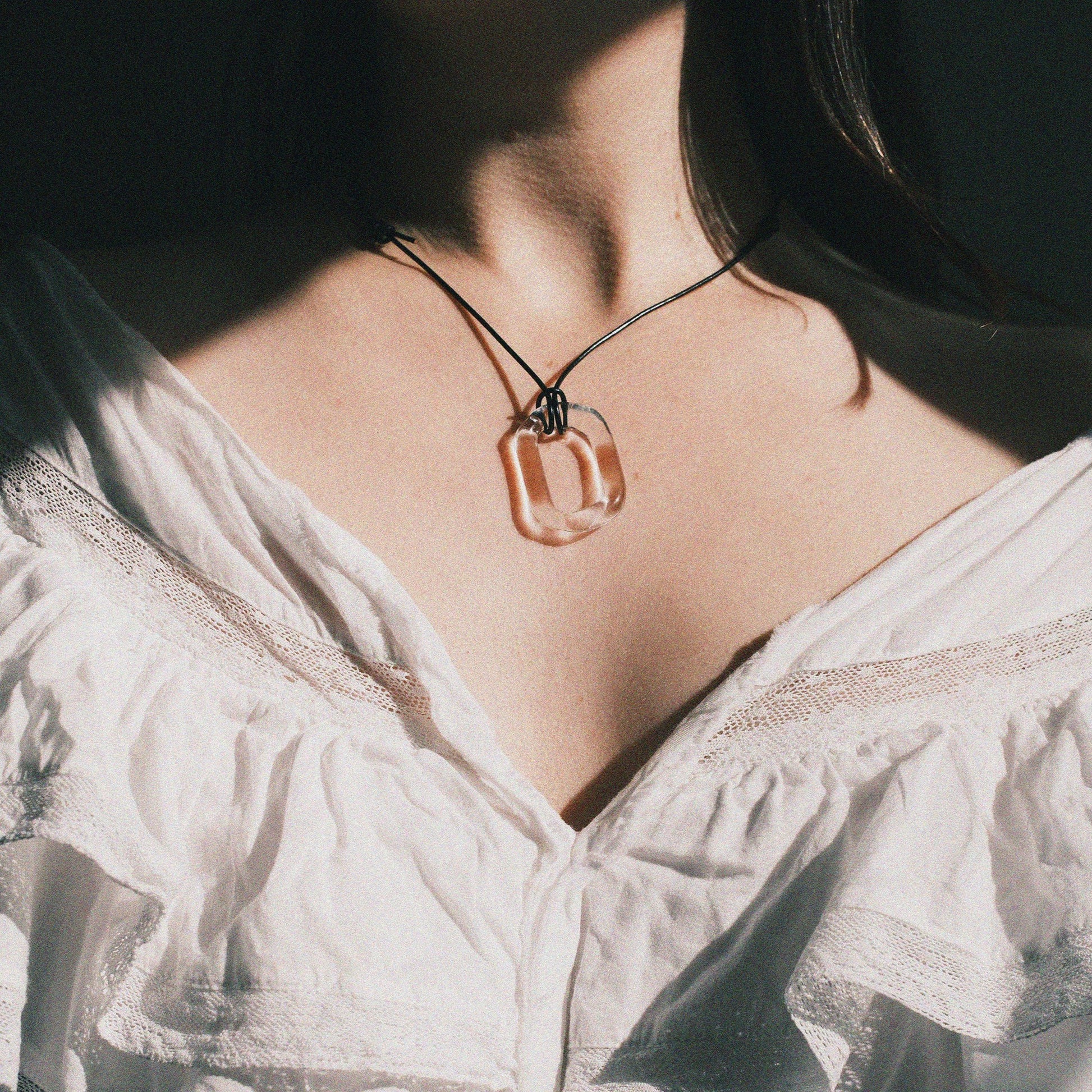 flame blown molten glass sculpted by hand, Siggy is an organic oblong pendant on genuine leather cord.