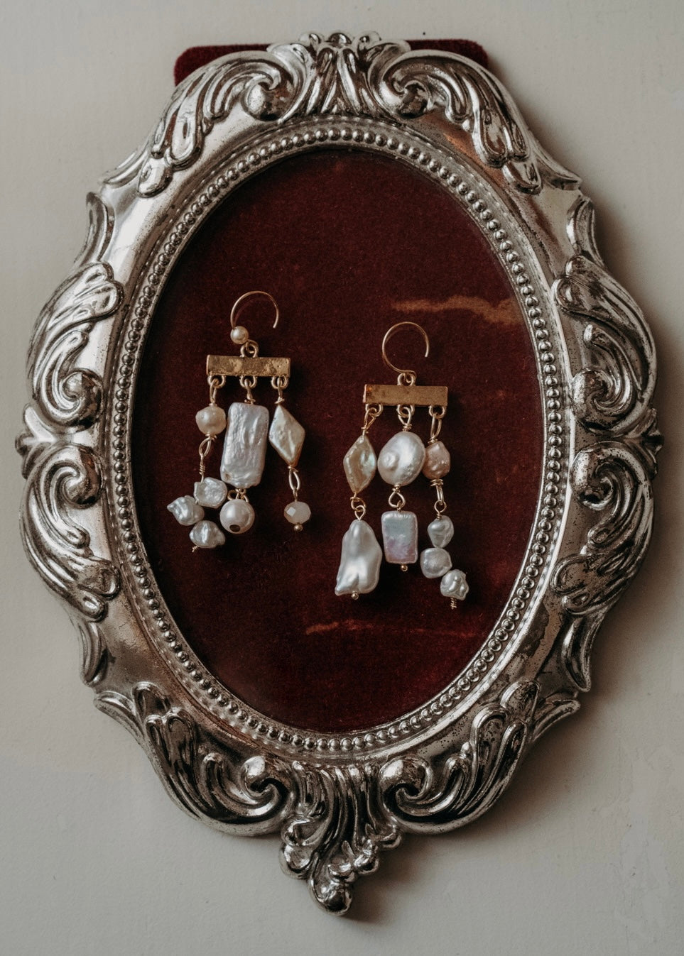 - Composition: A modern collage of asymmetrical genuine freshwater and baroque pearls dance on genuine 14K gold fill hoops