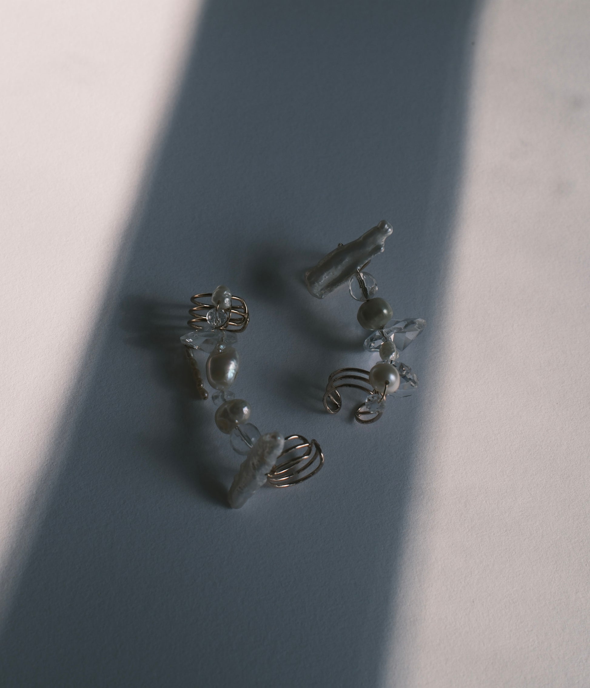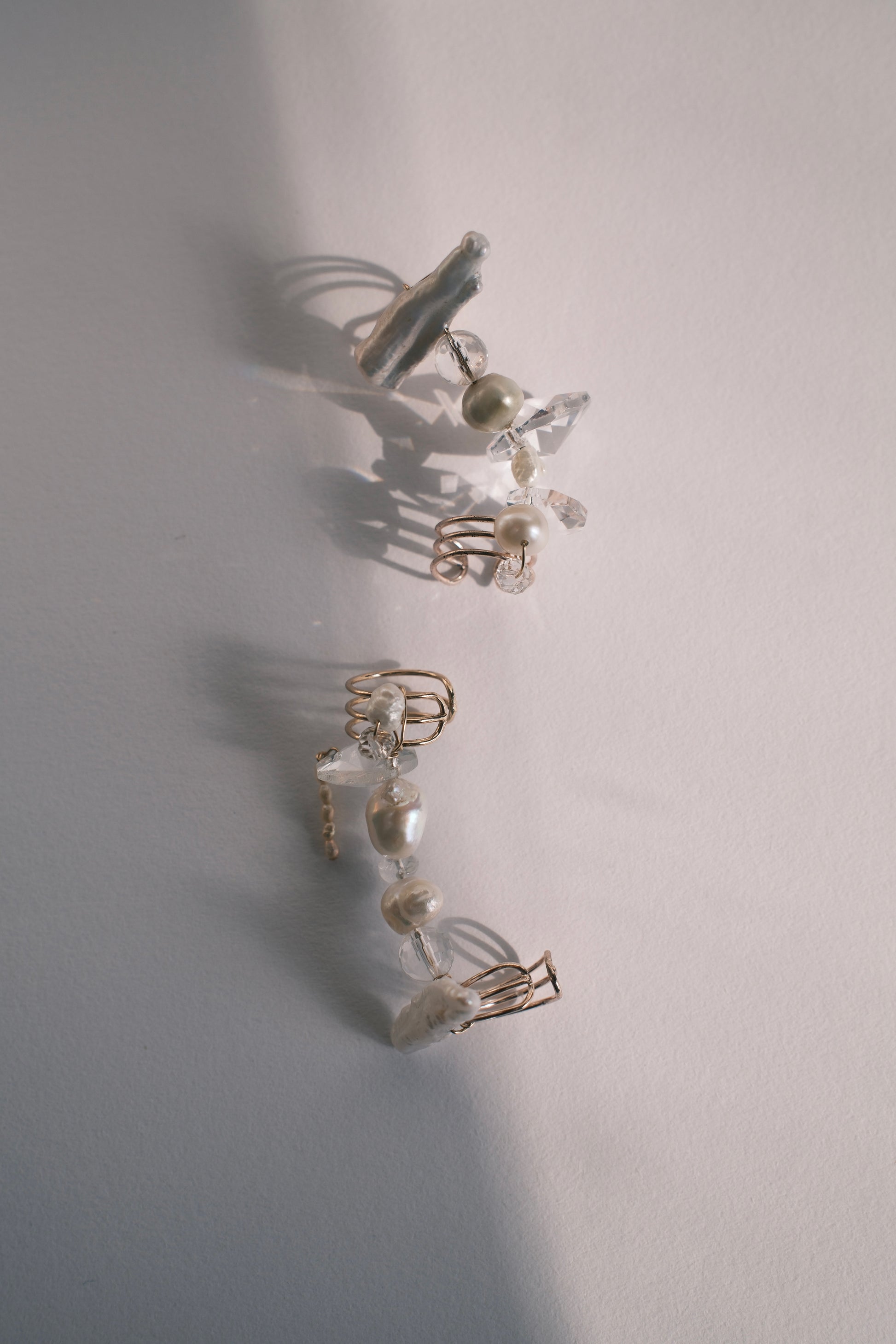 sparkling crystal and freshwater pearl ornate ear wreaths.